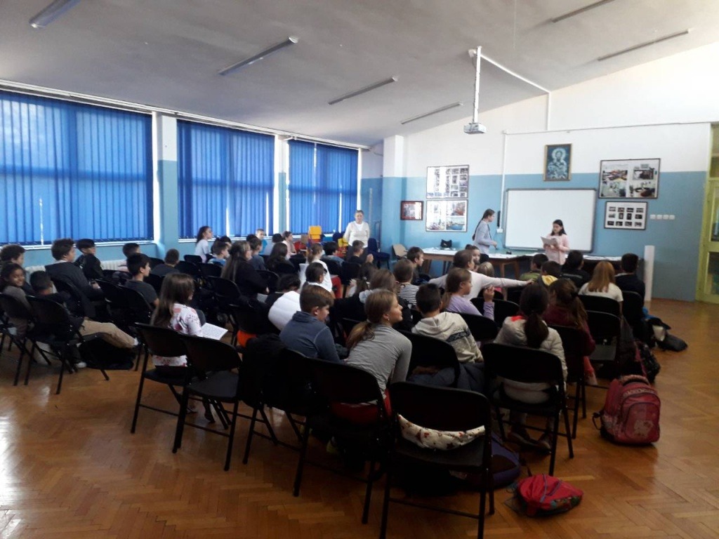 Ученици сва три одељења првог разреда, у оквиру пројектне наставе, имали су прилику да слушају предавање представника Societe Generale банке који их је упознао са основама финансијске писмености.