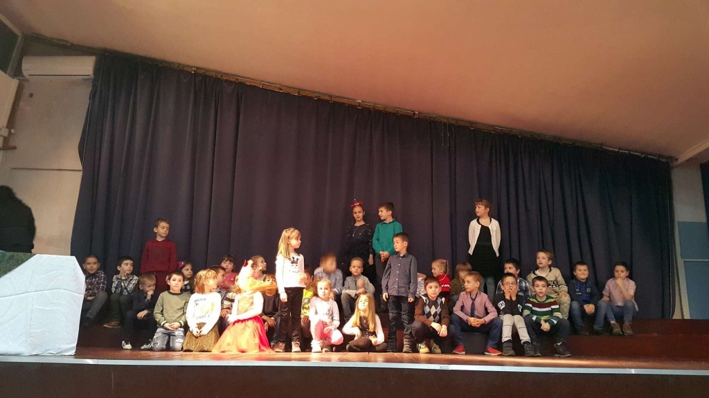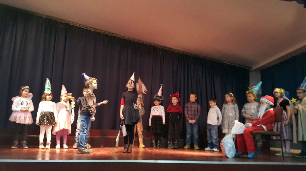 У оквиру пројектне наставе ученици сва три одељења првог разреда приредили су новогодишњу приредбу и вашар.