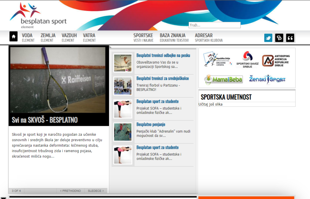 Све информације о бесплатним спортским активностим за младе, али и старије на територији целе Србије, можете наћи на сајту www.besplatansport.com