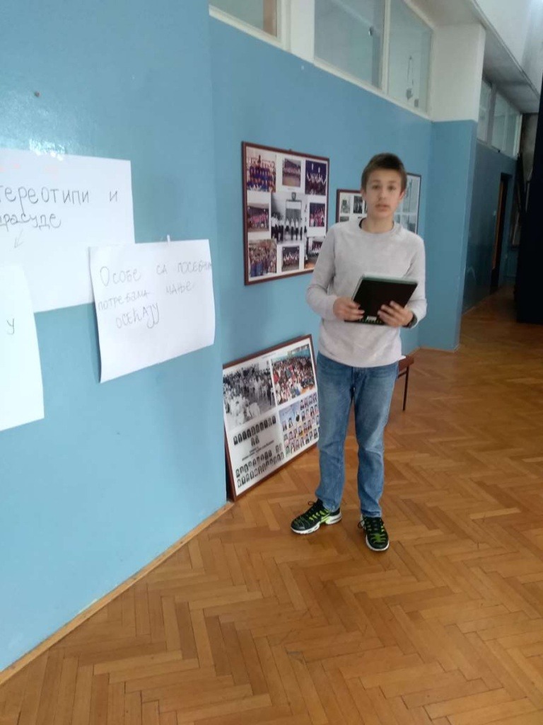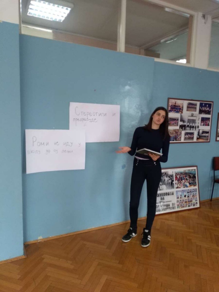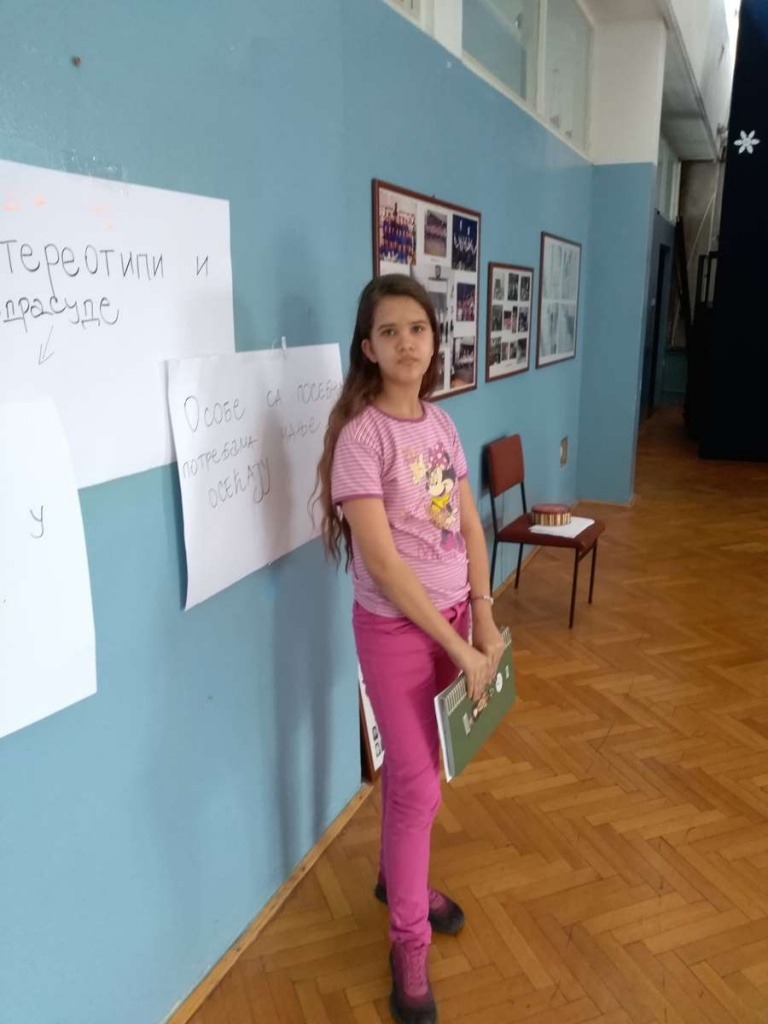Радионица „ Стереотипи и предрасуде“, друга у низу, је одржана 22.5.2019. О стереотипима и предрасудама су говорили ученици 6. И 7. разреда. Са тврдњом да Роми не иду у школу јер су лењи се није сложио ниједан ученик. Један број ученика сматра да особе са посебним потребама имају мању потребу за емотивним интеракцијама са другим људима и да не примећују када их окружење не прихвата.