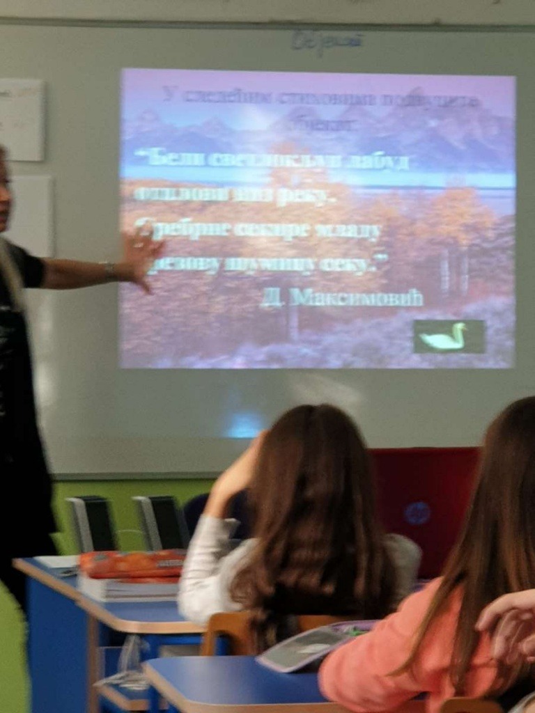 У пријатној, радној и веома активној атмосфери ученици IV/2 су са лакоћом савладали све постављене наставне циљеве. Часу су присуствовали педагог школе Зорана Бојичић, психолог Светлана Шапић, професор српског језика Бојана Јорданов и као гост професор дидактике са Учитељског факултета Вера Радовић. Ученици су слушали, посматрали, певали, препознавали, анализирали, закључивали, читали, упоређивали, повезивали и усвојили нова знања о објекту.