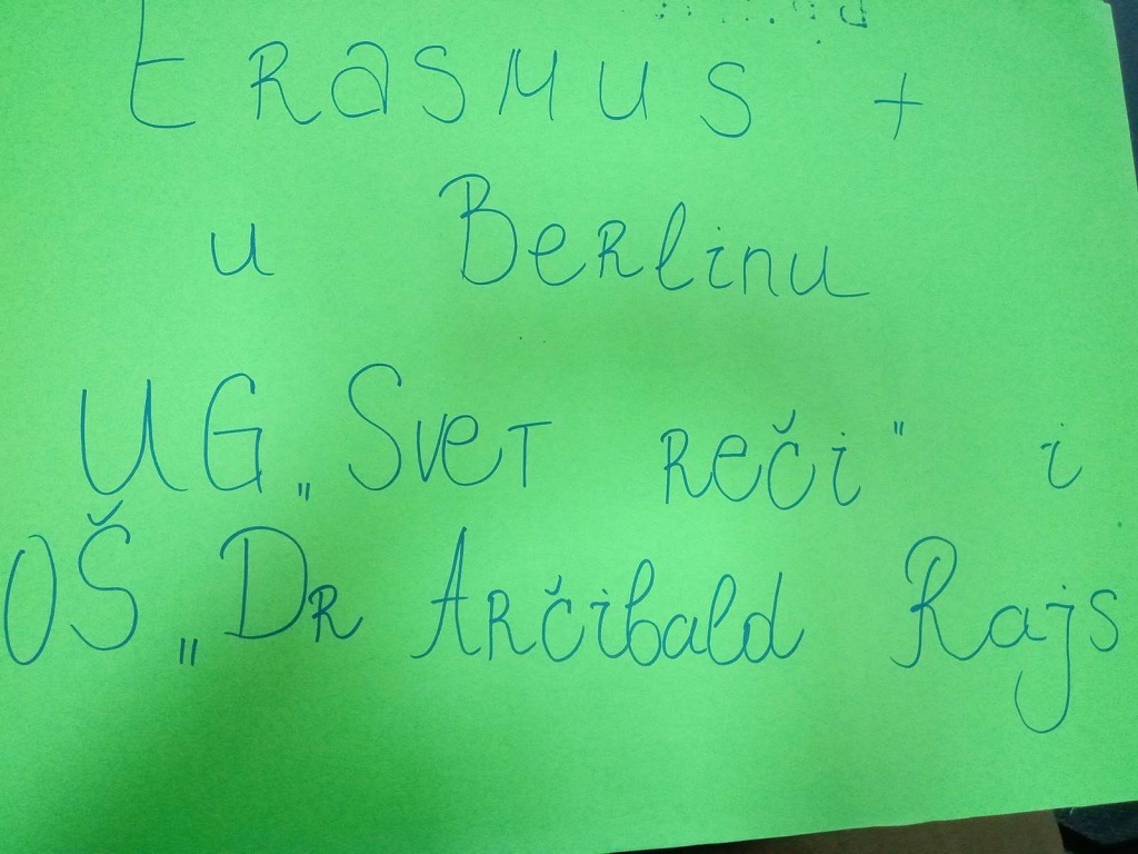 Представници Удружења грађана “Свет речи” из Велике Плане: Слађана Боричић- професорка ОШ“ Др Арчибалд Рајс“из Београда, Алекса Адамовић, Јана Јацић, Невена Јацић (професори Пожаревачке гимназије) и Ђорђе Милорадовић -студент из Деспотовца, у периоду од 03.до 12.новембра боравили су у Берлину, на тренингу у оквиру пројекта “South –East Adriatic Dialogе” Аdria.