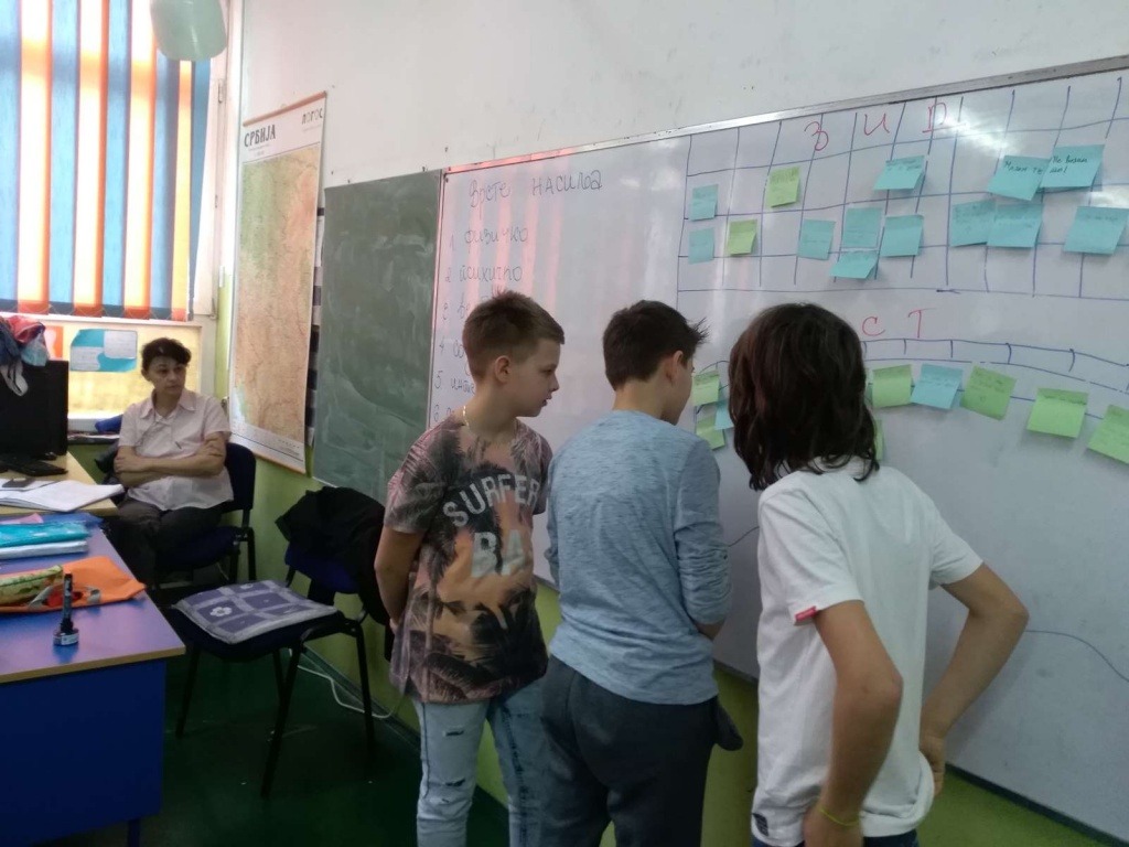 Ученици 6. разреда, Филип Улић и Вељко Љубојевић, су одржали радионицу са ученицима 4/1. Тема је била врсте насиља.