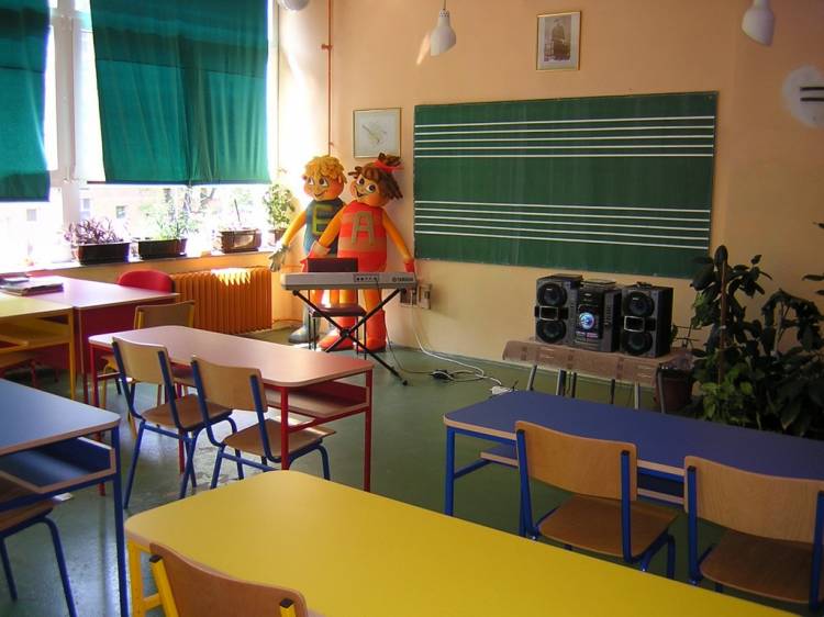 Музички кабинет је изузетно лепо урећен и опремљен потребним наставним средствима која омогучавају квалитетан рад на часовима музичке културе. Зидови су окречени у наранџасту боју која даје топлину и пријатну атмосферу амбијенту. На зидовима се налазе слике композитора и музичких инструмената. Простор је опремљен цвећем. Кабинет и клупе су овекОд наставних средстава кабинет поседује: синтисајзерса “sony” са комплетном тонском техником, квалитетан музички стуб са три звучника, компакт дискови, касете , металофонина којима свирају ученици, ноте и уџбеници који се користе у наставном и ваннаставним. Кабинет и клупе су увек чисти и уредни јер се хигијени посвећује велика пажња активностима.